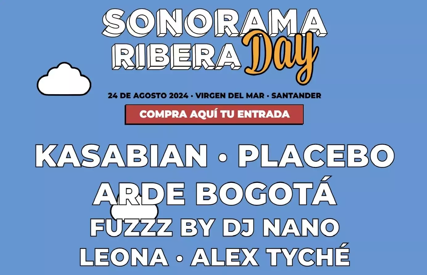 El Sonorama Ribera Day 2024 en Santander promete ser un evento inolvidable, con un cartel repleto de artistas de renombre como Kasabian, Placebo, Fuzzz, Leona, y Álex Tyché. Además, el reconocido DJ Nano estará presente para animar la fiesta con sus sesiones cargadas de buen rollo y ritmos pegajosos.